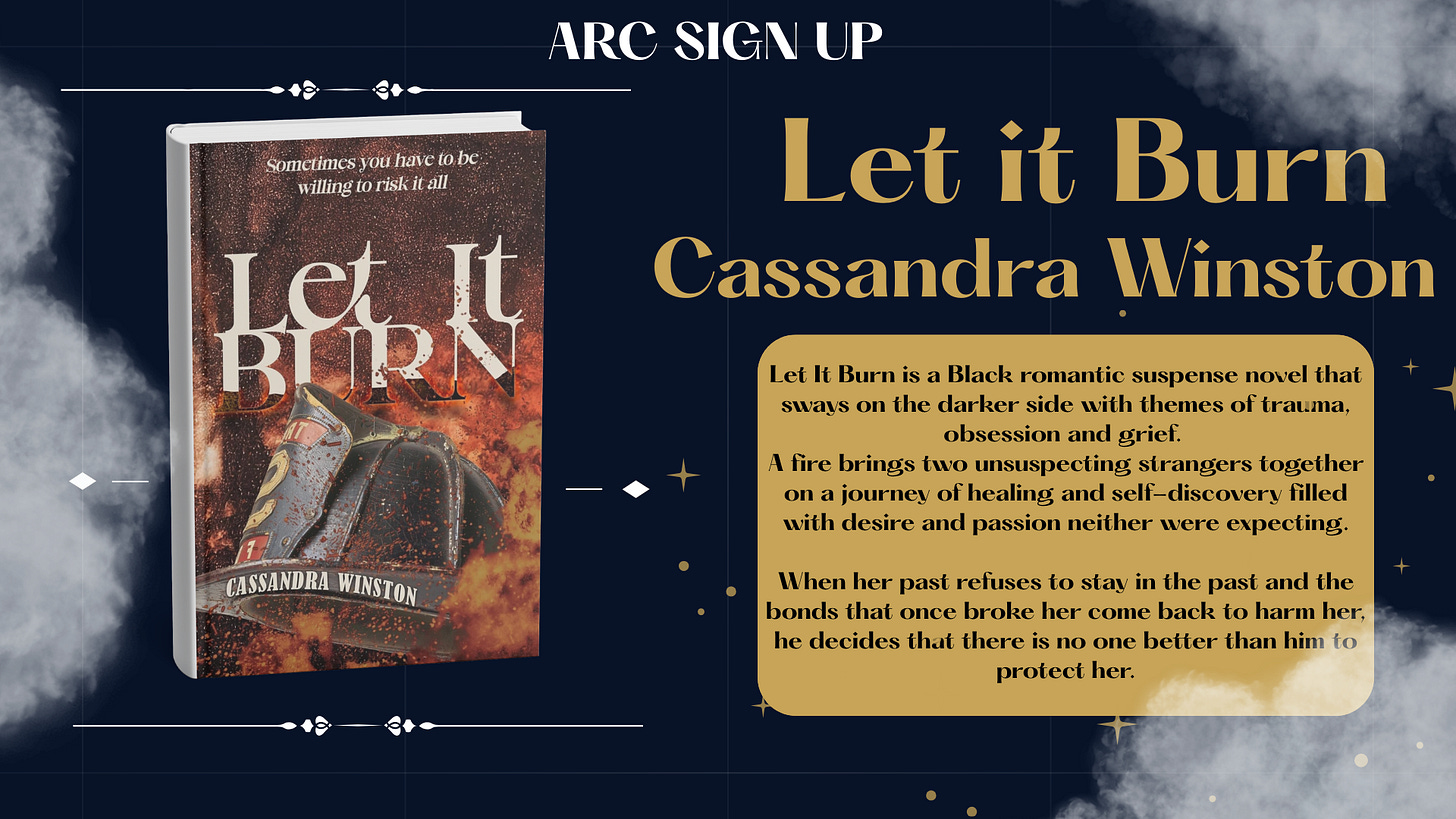 If you haven’t already, please sign up for Let it Burn by Cassandra Winston.