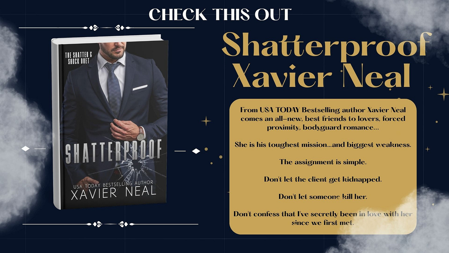 Xavier Neal is a USA Today bestselling author with a bodyguard romance! Who doesn’t love that? Especially a bodyguard who has one job, which is to make sure the client doesn’t get hurt! And yet..he’s in love with her. SIGN ME UP!